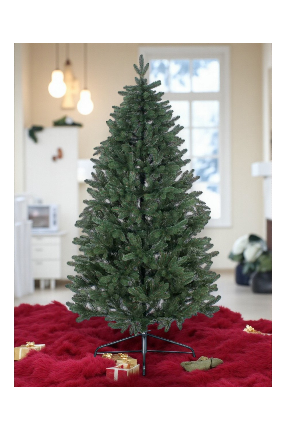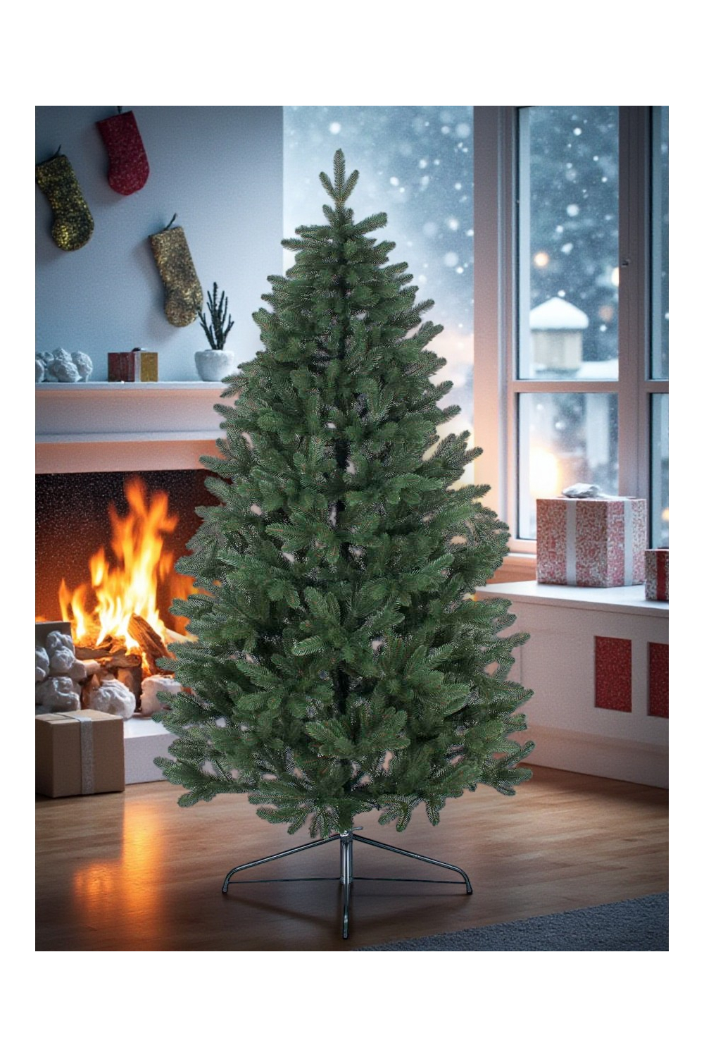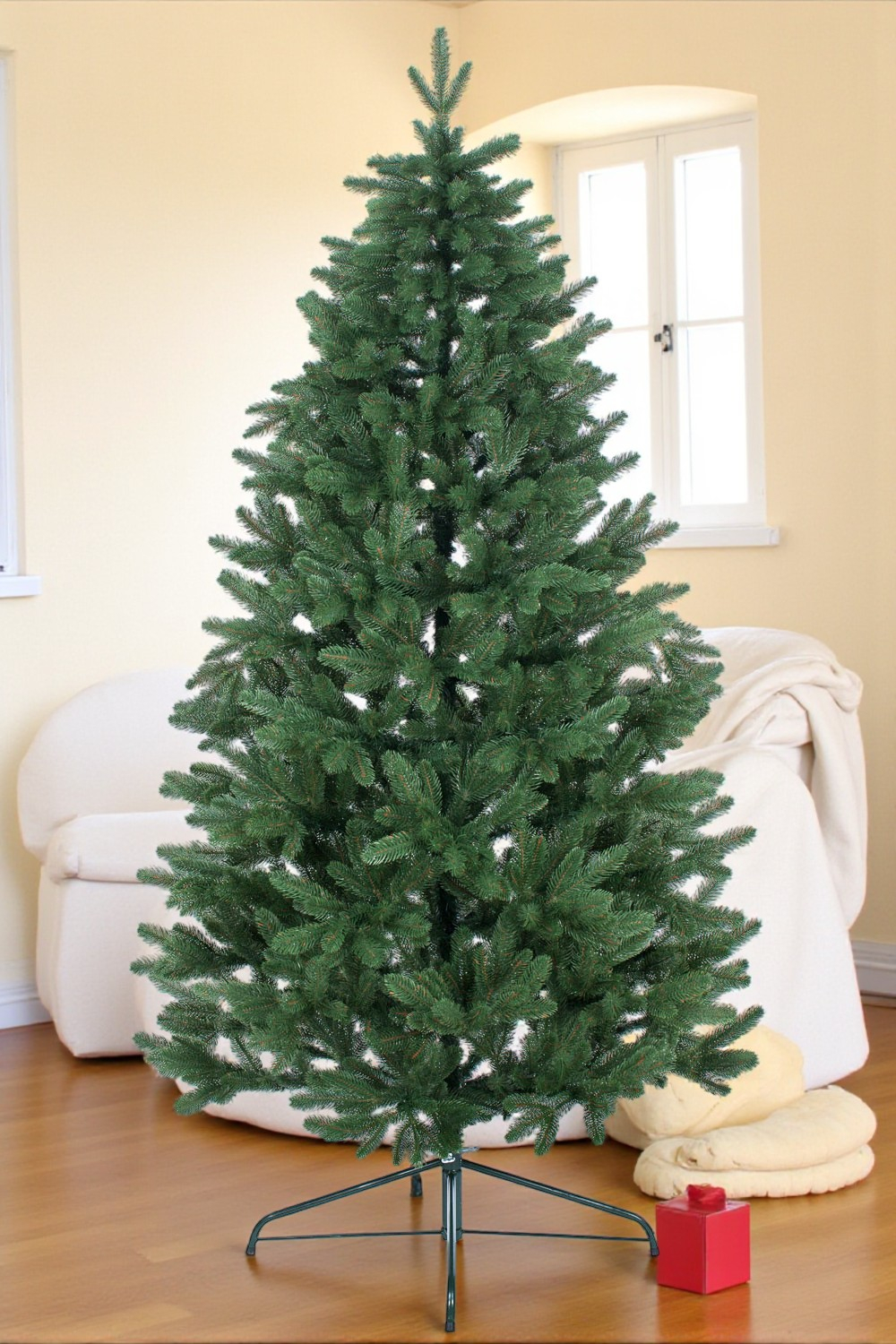 - У комплект входить металева підставка і картонна коробка для транспортування та зберігання ялини.