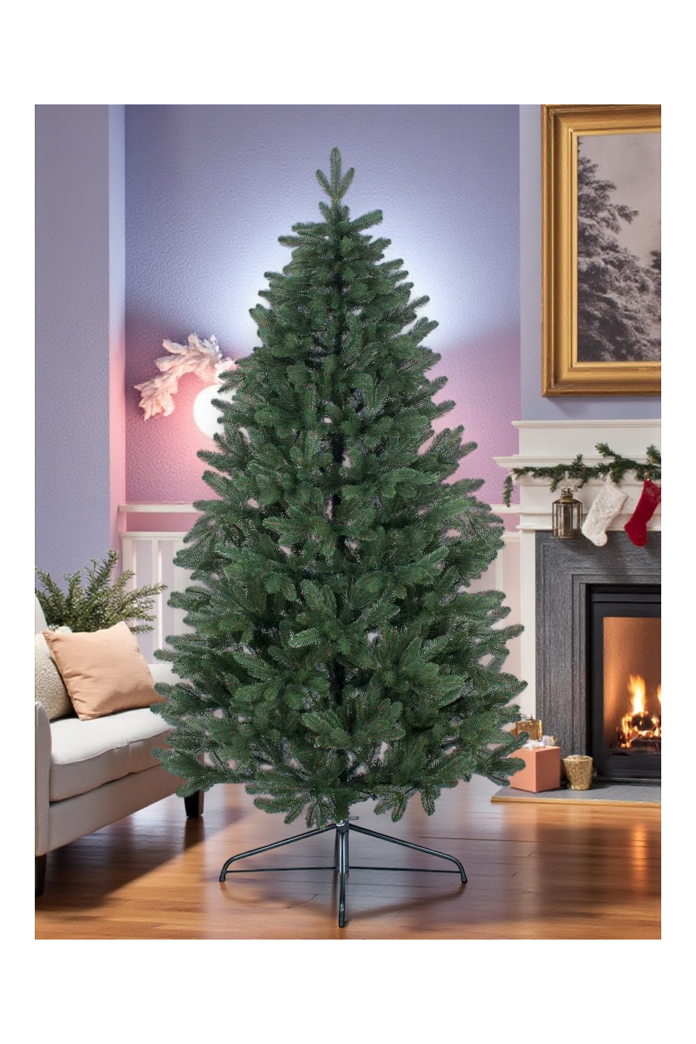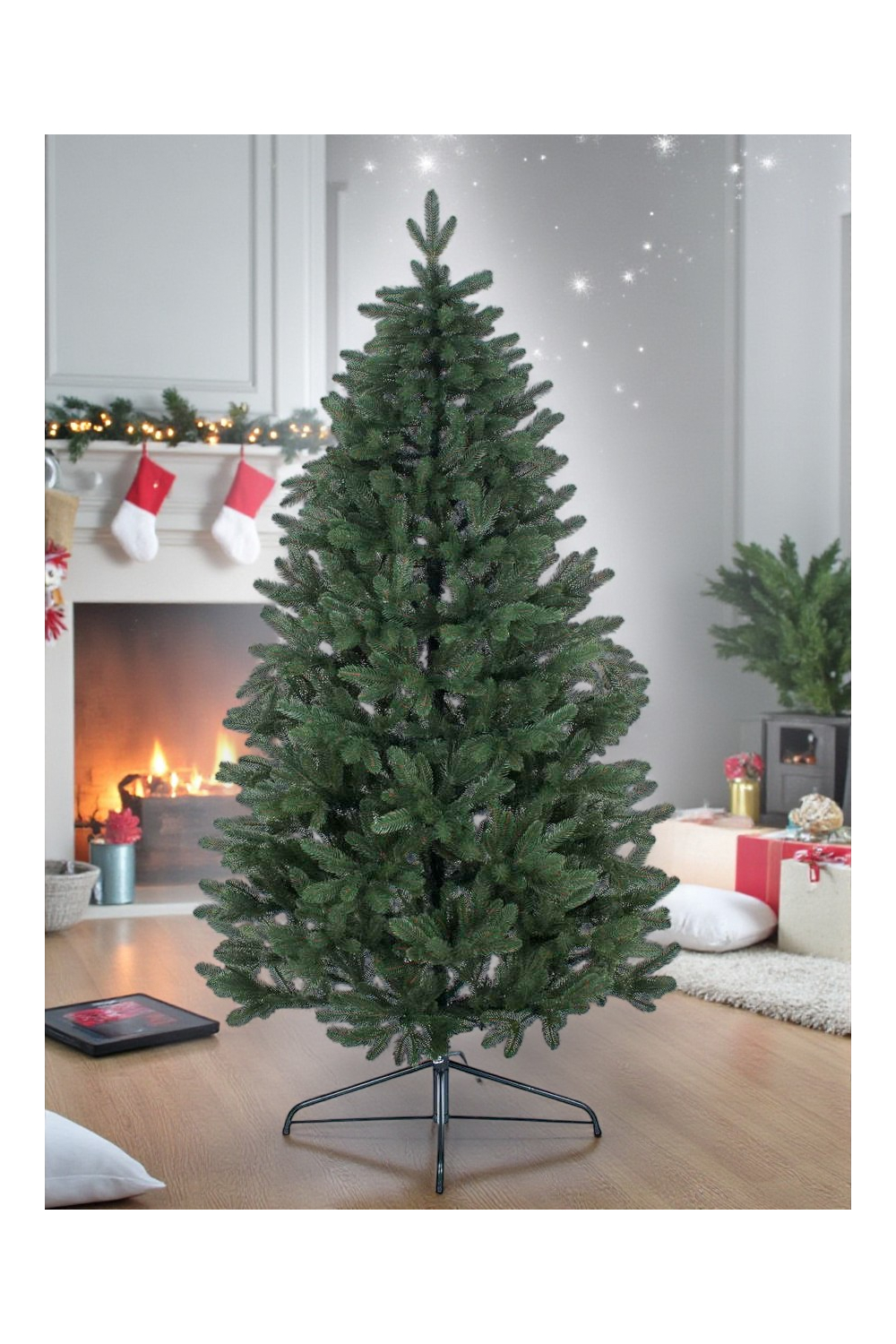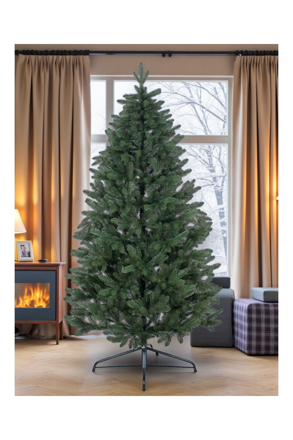 - У комплект входить металева підставка і картонна коробка для транспортування та зберігання ялини.